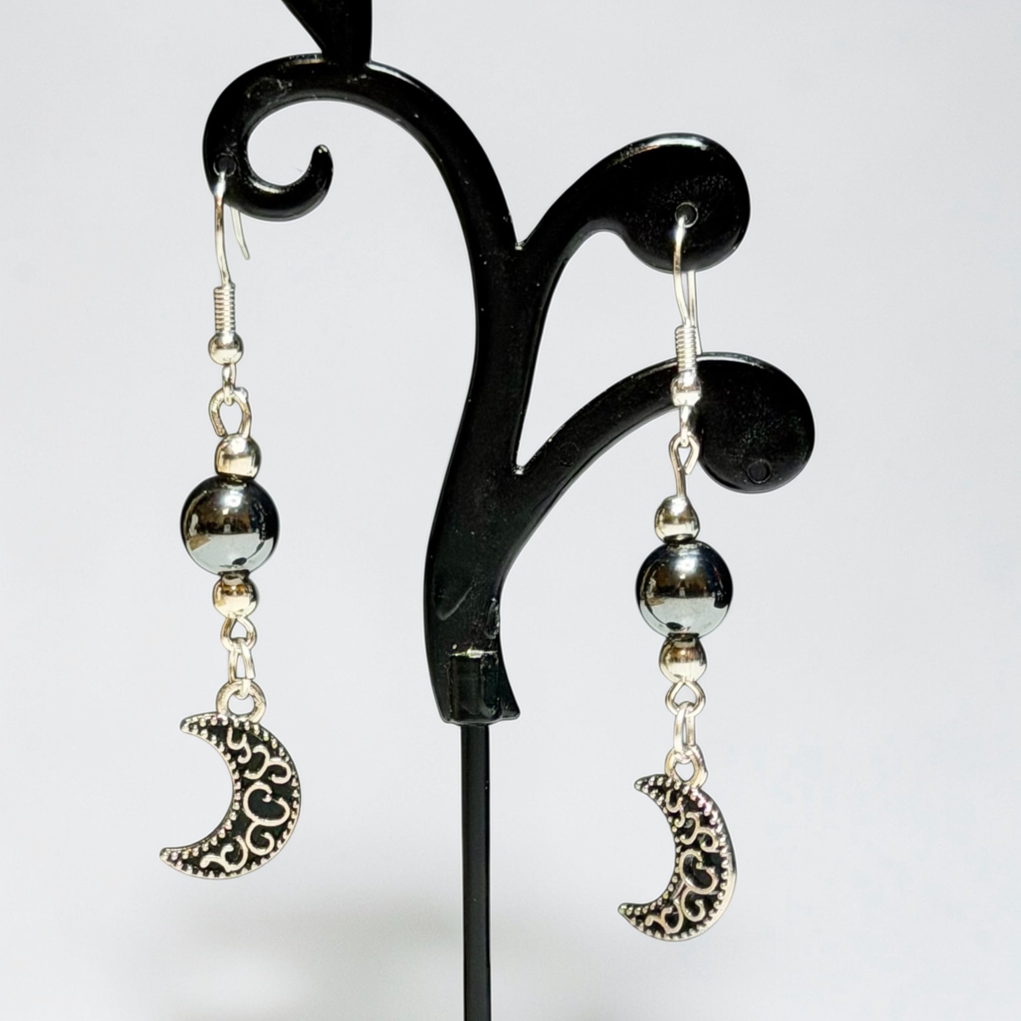 Harness the protective energy of black obsidian with these enchanting crescent moon earrings. Featuring a genuine obsidian bead paired with a delicate filigree moon charm, these earrings blend beauty with powerful spiritual meaning.