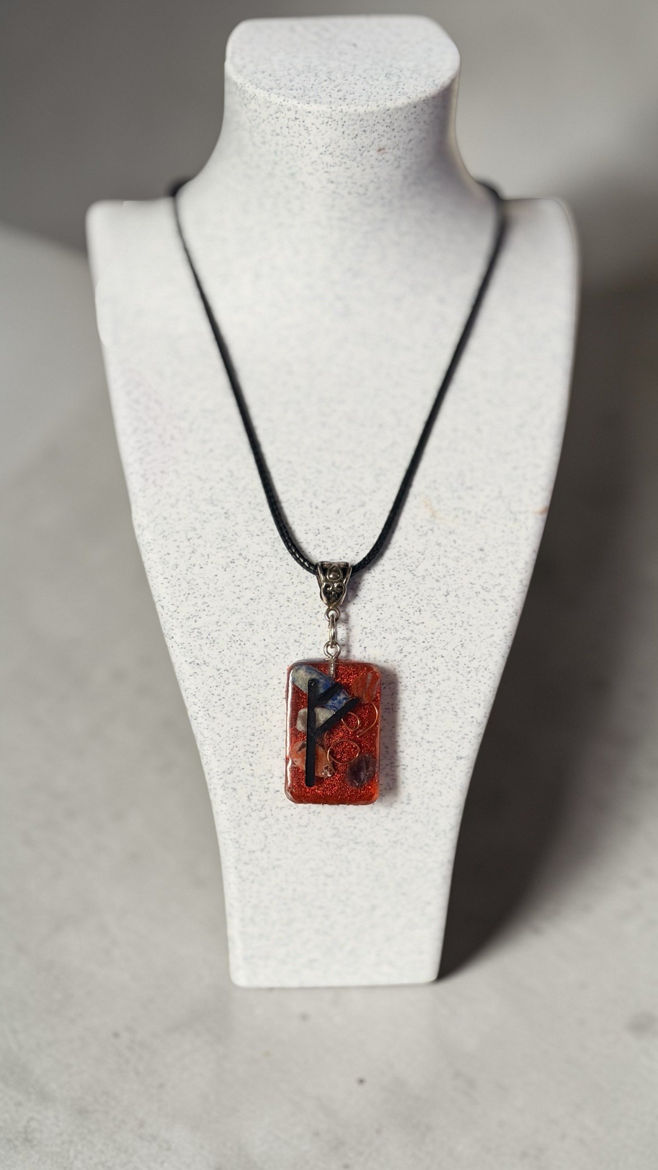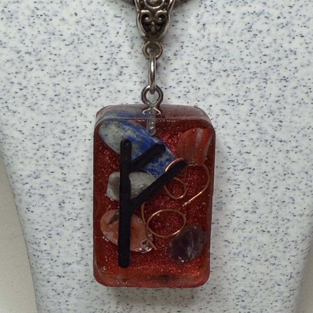 Harness the energy of abundance and prosperity with this handcrafted Fehu Rune Orgonite Necklace.