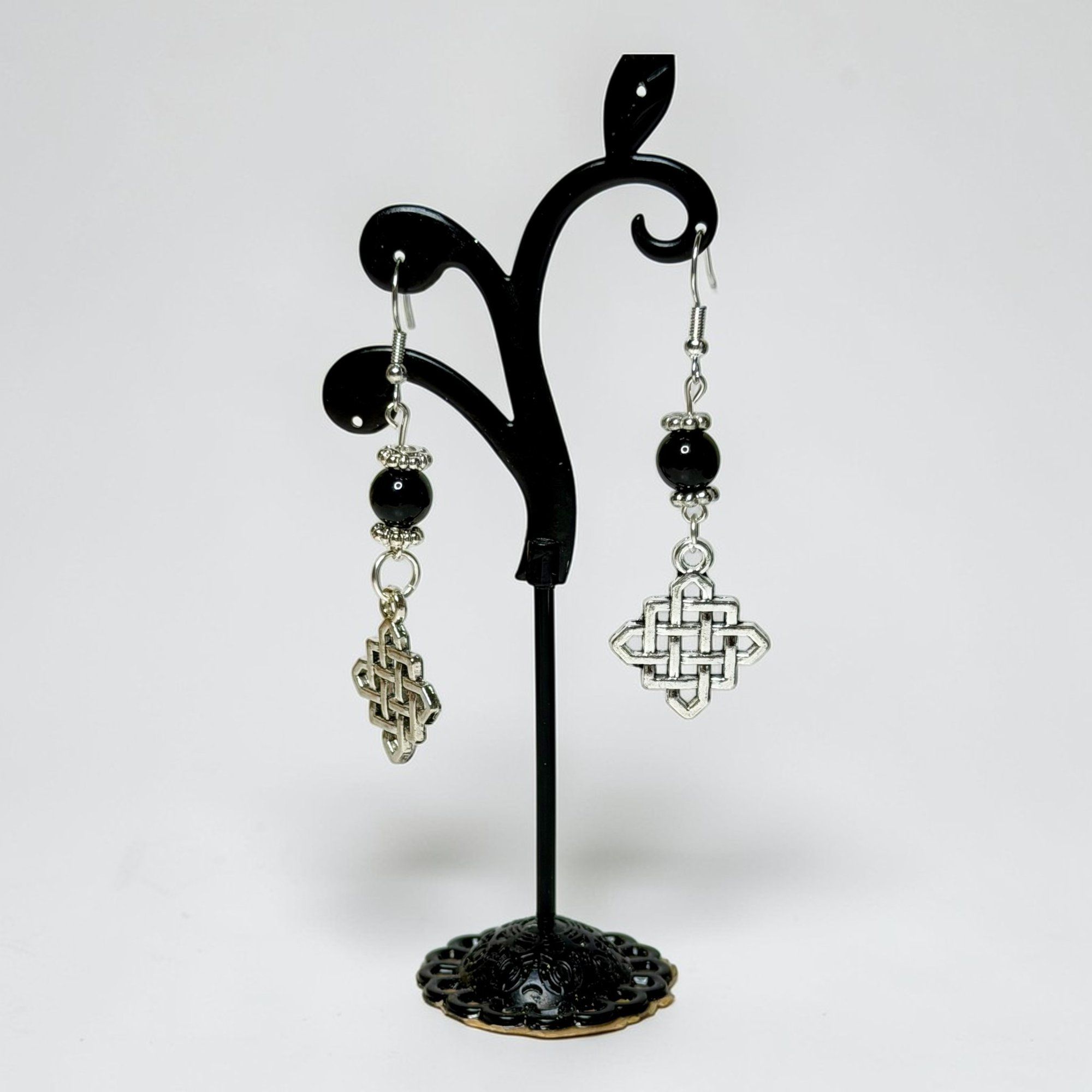 Each piece features a finely detailed silver-tone form, suspended with intention and paired with a polished black onyx bead. Known for its association with strength and grounding, onyx brings a quiet sense of confidence and depth to the design.