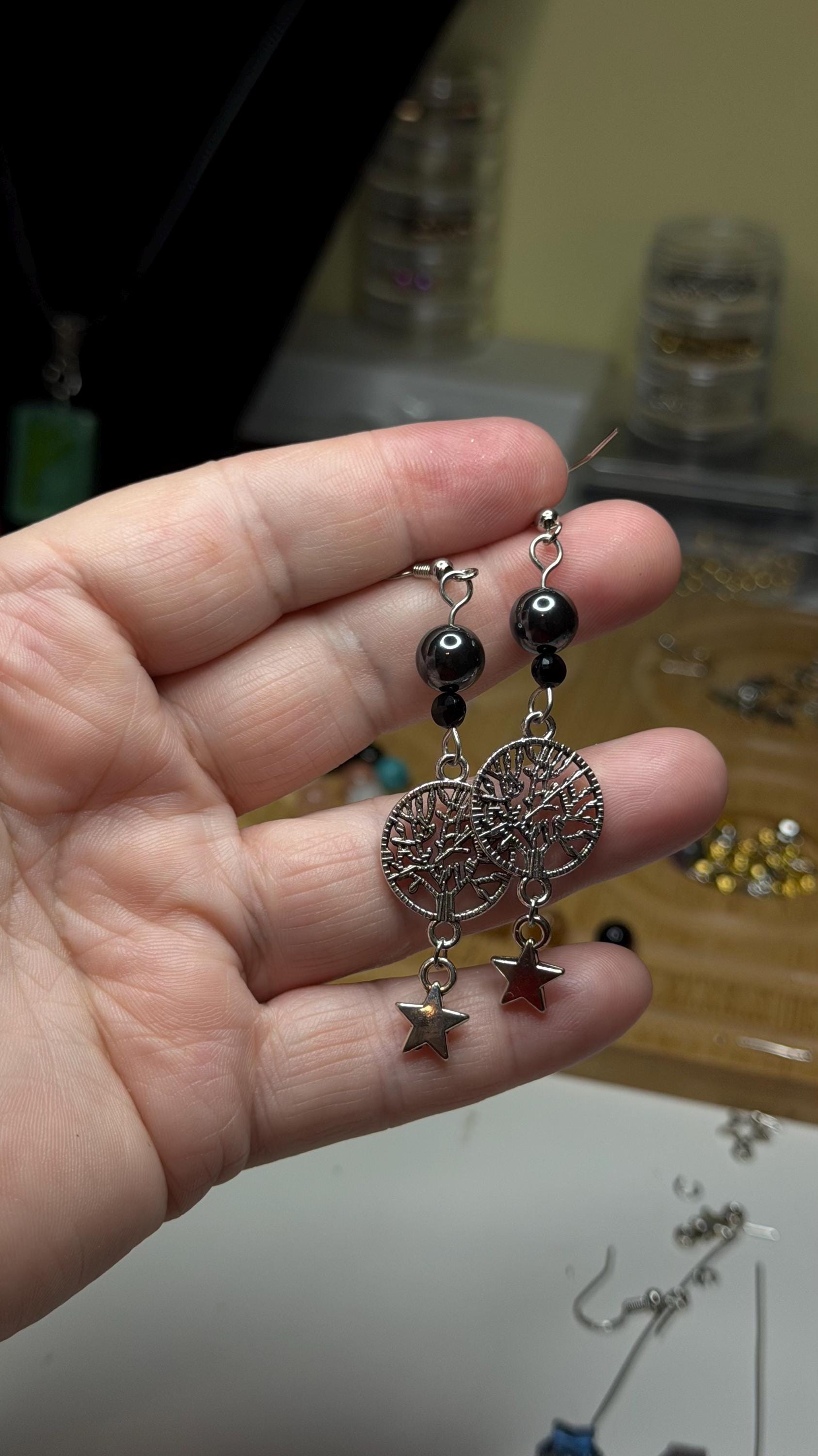 The sleek black and metallic stone palette gives a luxe winter feel without being overly “holiday-only,” making it wearable far beyond Christmas. Whether gifted to a loved one or worn as your own seasonal talisman, it carries intention, style, and a subtle mystical sparkle that Etsy shoppers adore.